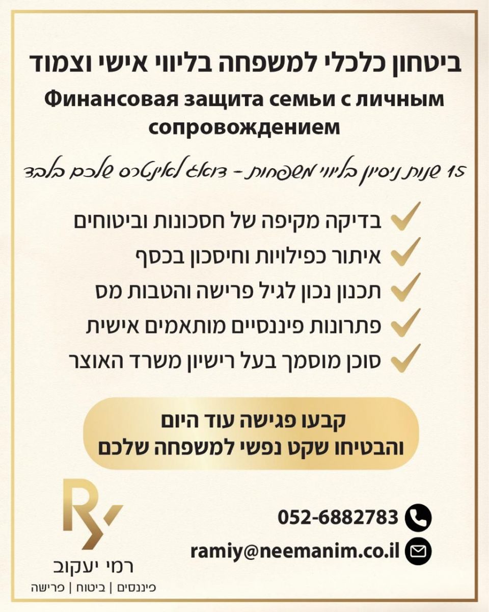 15 שנות ניסיון בליווי משפחות – דואג לעתיד שלכם בלב שלם
